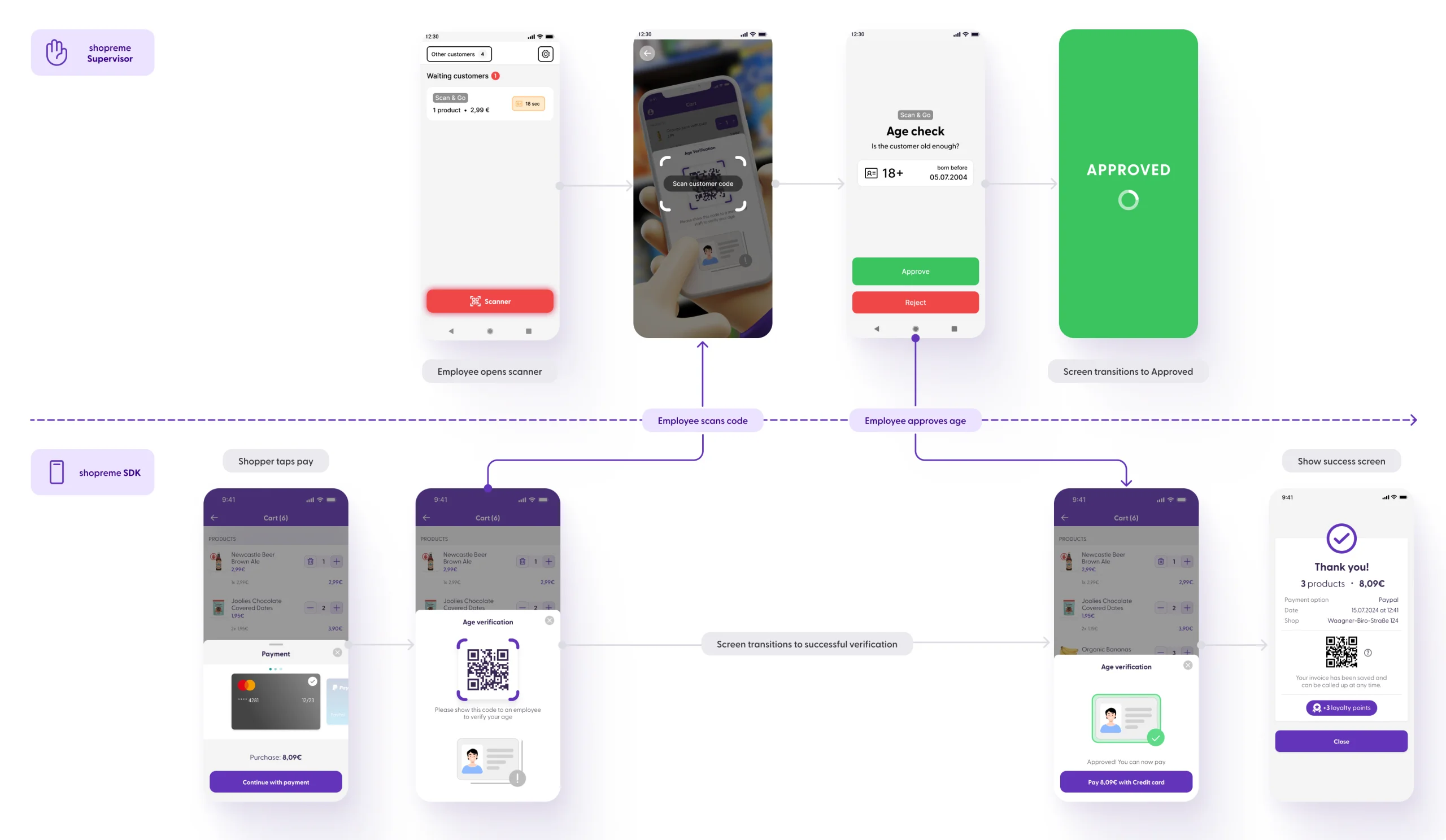 Here is a quick overview of the flow and interaction between an employee and a customer during the age verification: