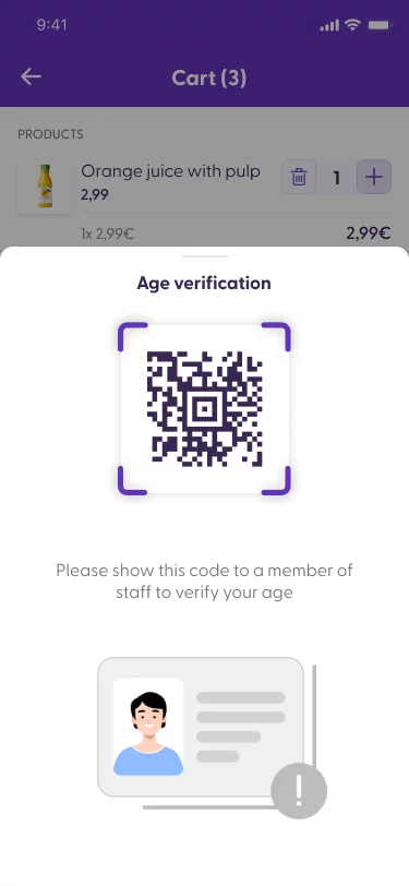 When a customer has an age-restricted product in their cart and they proceed to pay, they will be asked to reach out to an employee to verify their ID. At the same time, employees will receive a notification and see the customer in the Highlighted Customers area in their app.