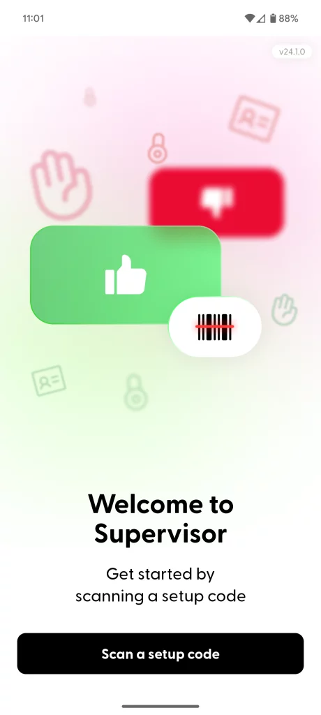 android.permission.READ_EXTERNAL_STORAGE– The app reads a configuration file during the initial setup.android.permission.WRITE_EXTERNAL_STORAGE– The app writes a configuration file after the setup has been completed.android.hardware.camera– The camera is used to scan codes from the customer’s phone.
