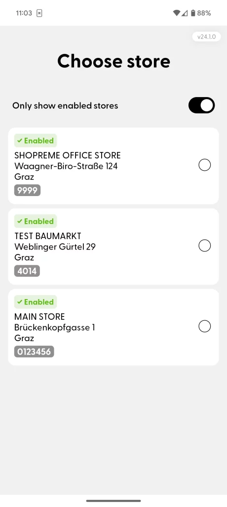 If you are registered for more than one store, you will be asked to confirm the store where you are currently located.