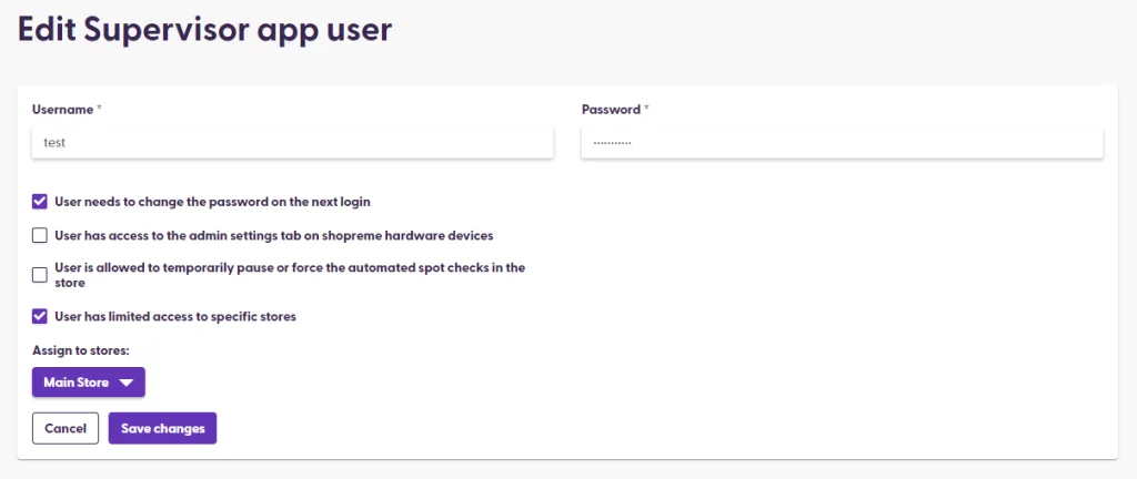 If you are a manager or have access to the Management Console, you can help an employee reset their password in the “Supervisor Users” section by entering a temporary password and ticking the box “User needs to change the password on the next login”. After the employee resets the password, this box will be unchecked again.