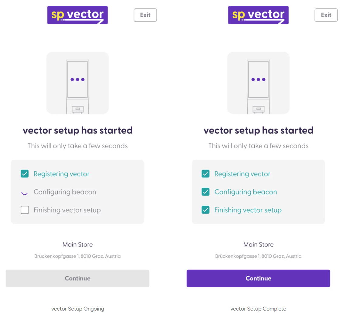 During this process, our system will register the vector to your store. That is, the vector device will receive a unique ID that is linked to your store location and the shopreme Middleware.
