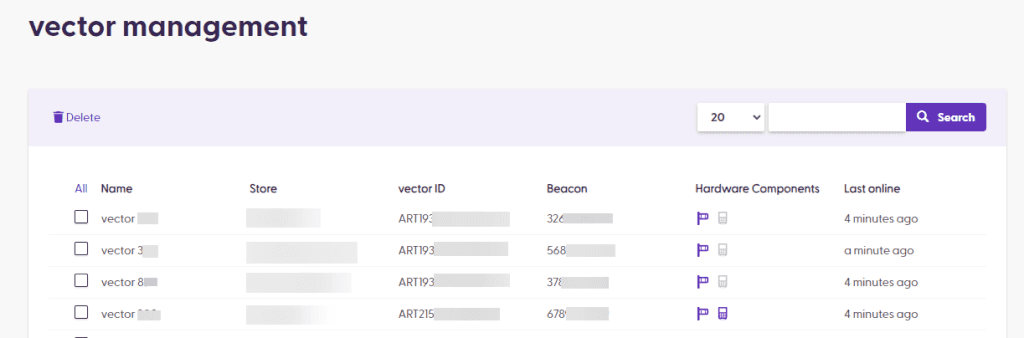 Then, on a separate device, please navigate to your shopreme Management Console, and then click on “vector” on the left-hand menu, under “Hardware”: