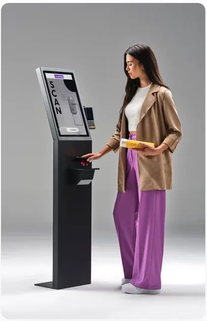 Once the payment is validated, the shopper will see a “Thank you” animation on the vector and the Scan & Go app. If available, the physical gate next to the vector will open to allow the shopper to leave the store. After a set amount of time, the gate will close, and the screen will return to the idle-screen animation.