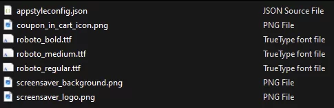 If you are using our shopreme app for the handheld scanners, you can customize its appearance, such as images, lottie animations, fonts, and color scheme. To do that, a few files must be pushed to the device in a .zip file. This .zip file should contain all the custom files.