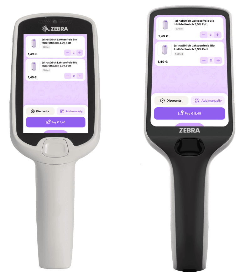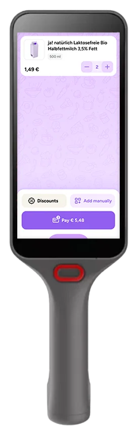 The shopreme handheld scanners’ app offers a fully integrated Scan & Go experience, without the need for a smartphone. It empowers customers to scan products, track their purchases in real time, and pay at the cash register. Depending on the hardware, other payment methods such as NFC payment, may be possible.