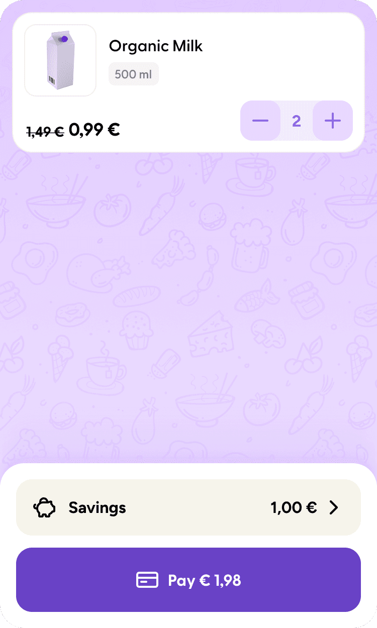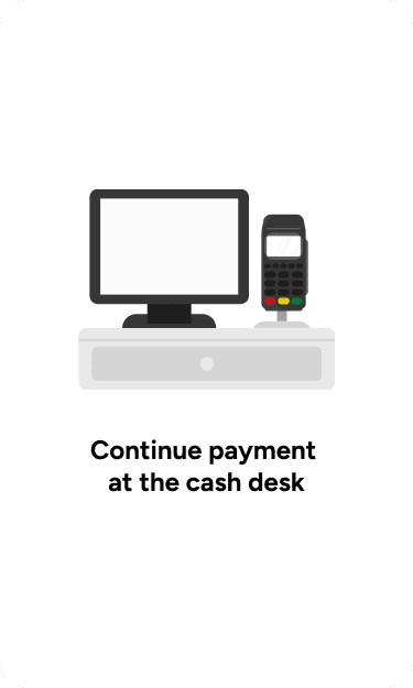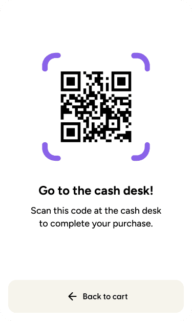 The handheld scanner app will show a Payment QR code to transfer the scanned products to the cash register, and the shopper can pay as usual, either by cash or using a payment terminal.