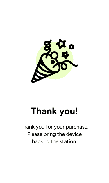 After a successful payment, the handheld scanner displays a message instructing teh shopper to return the device to the charging cradle. Receipts are printed at the cash register, or sent digitally in case of mobile NFC payment.