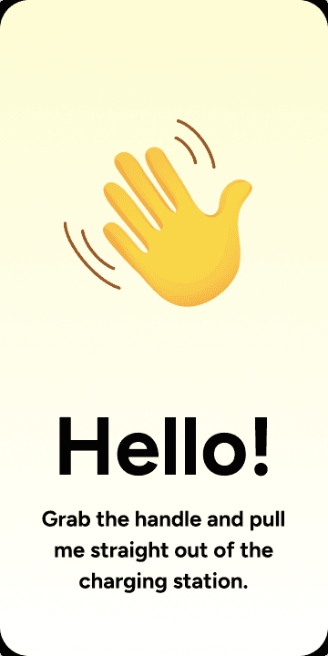 Upon docking, the device automatically locks and begins charging, ready for the next customer. This idle screen can also show retail media.