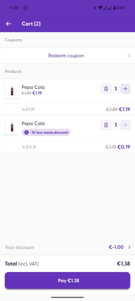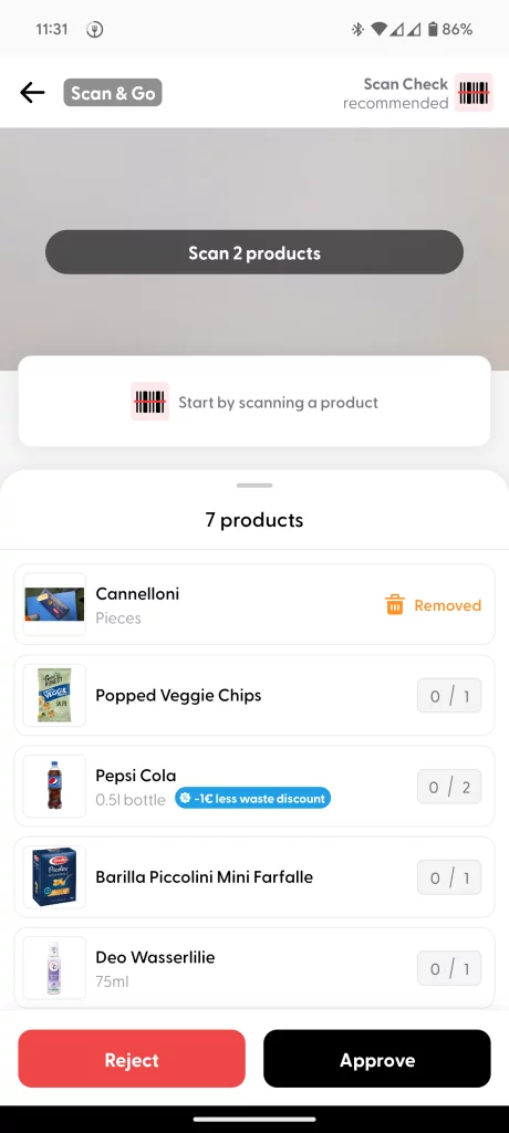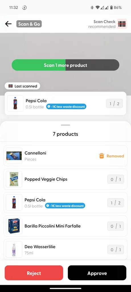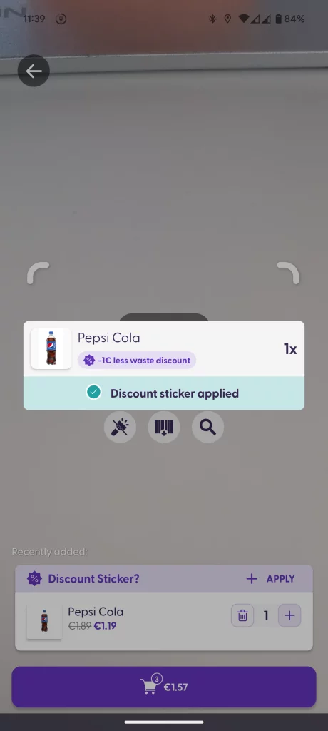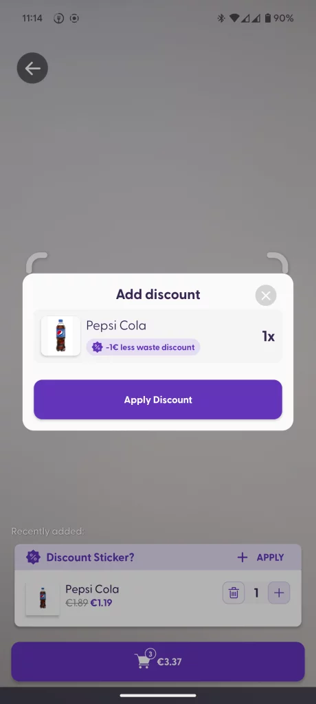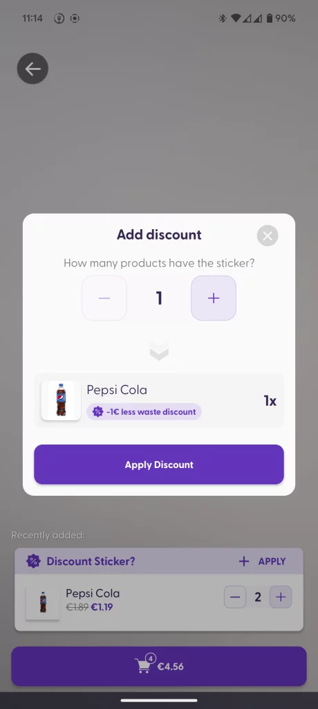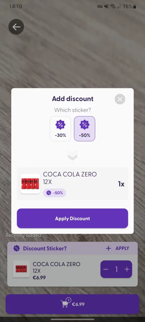 One limitation that is worth mentioning is that the product quantity cannot be increased (See the “+” option grayed out on the product position with a discount sticker). This allows shoppers to only add discount stickers after scanning to avoid any mistakes.