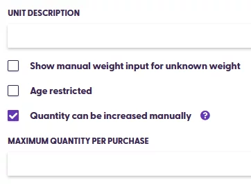 Please be aware that the shopper must be allowed to manually increase the quantity (using the “+” button in the app). This is done by checking the box “Quantity can be increased manually”, which will also unlock the “+” button for those products, no matter if they were scanned or added via the search: