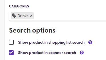 boolean, default value:false. Indicates whether the product should be displayed in the search accessible from the scanner, which allows adding the search results to the cart without scanning them.categoryIds: Datatype