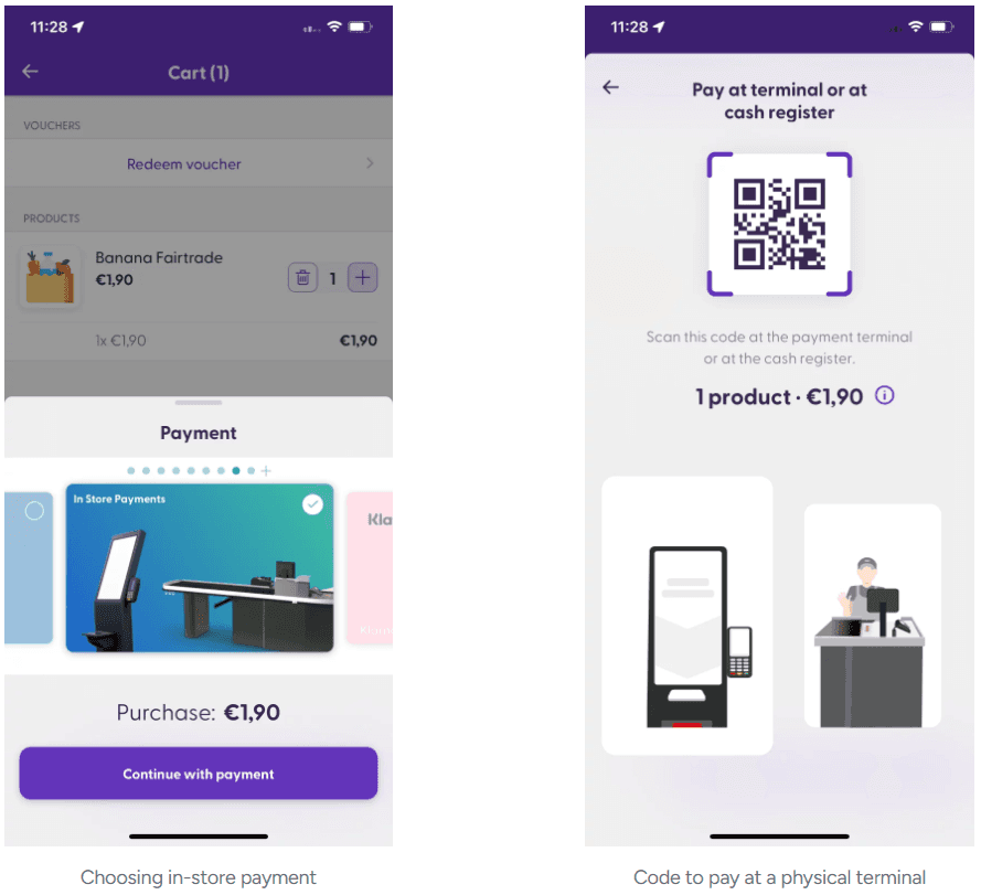 Paying with an online payment method, such as a credit card, requires that the shopper enter the card details manually on the app before the actual payment process. Some payment providers can also request a two-factor verification, such as 3DS, to prevent fraud. Due to time constraints during the shopping experience, many shoppers prefer going to a physical payment terminal and tapping to pay instead of going through the process described before.