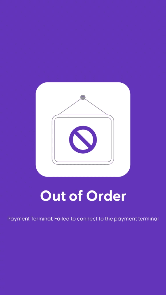 The matrix SCO app can show either errors or out-of-order screens to help employees understand when an unexpected error happens, and what steps to take next to resolve it.