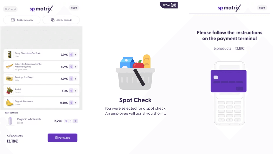 Spot checks are security controls carried out by the employees in a store. In short, employees can verify if the items in the customer’s shopping cart match the list of items that they scanned on the matrix SCO.
