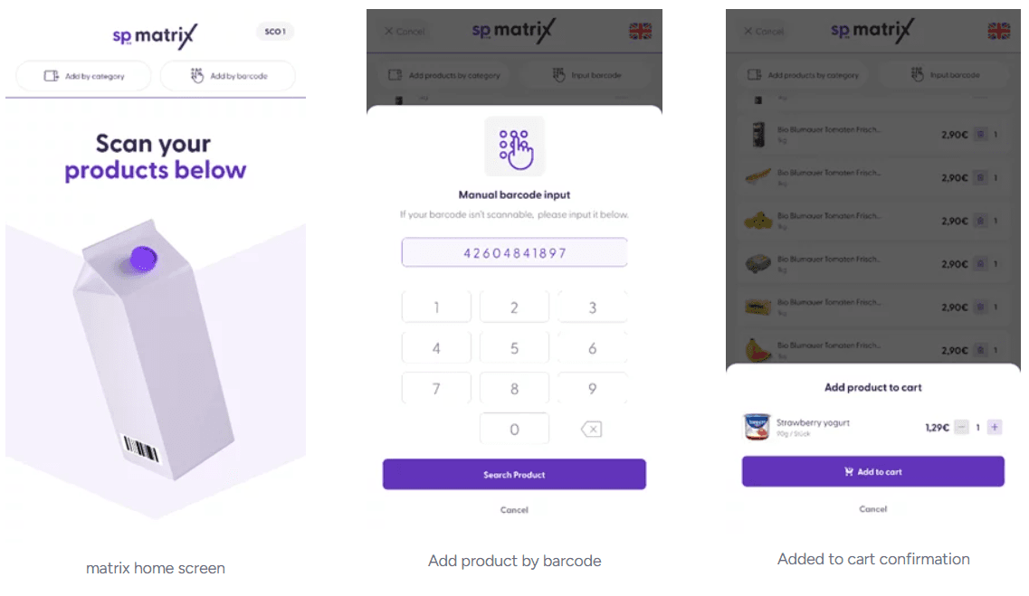 When opening this menu, the shopper will see a field to type in the numbers of the barcode on the product. Then, after tapping “Search product”, the result will be displayed, and the shopper will need to confirm that the option is correct and should be added to the cart.
