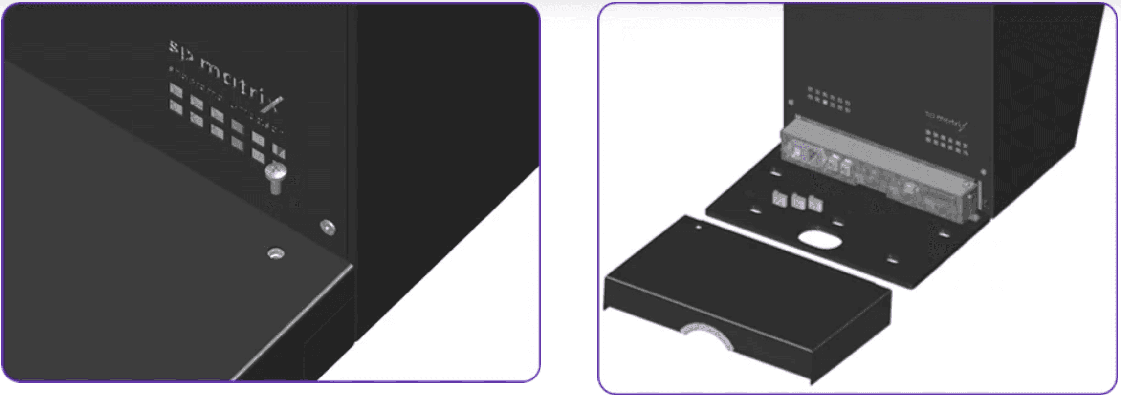 Connect the three cables to the matrix and secure them with the designated strain reliefs.