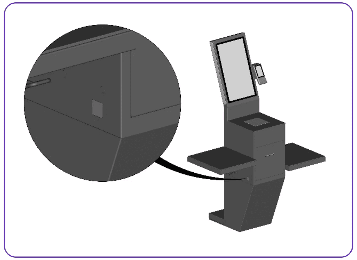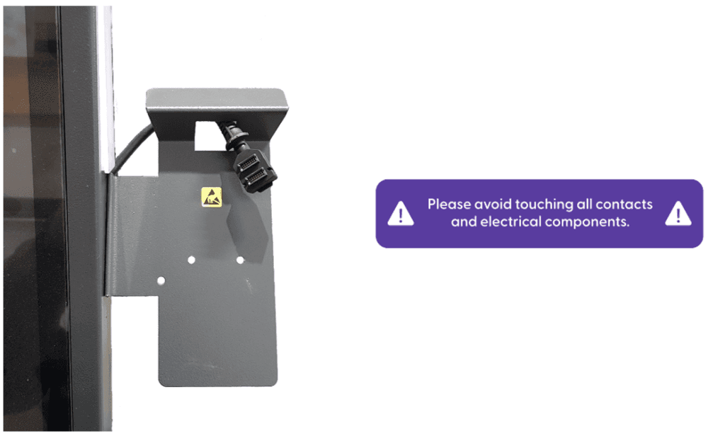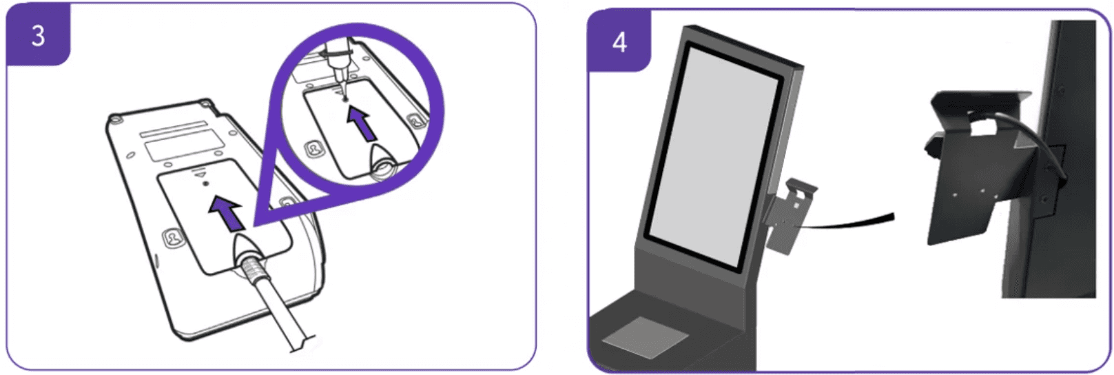 The mount is located on the right side of the screen, and it should already include the payment terminal connector cable, as displayed below.