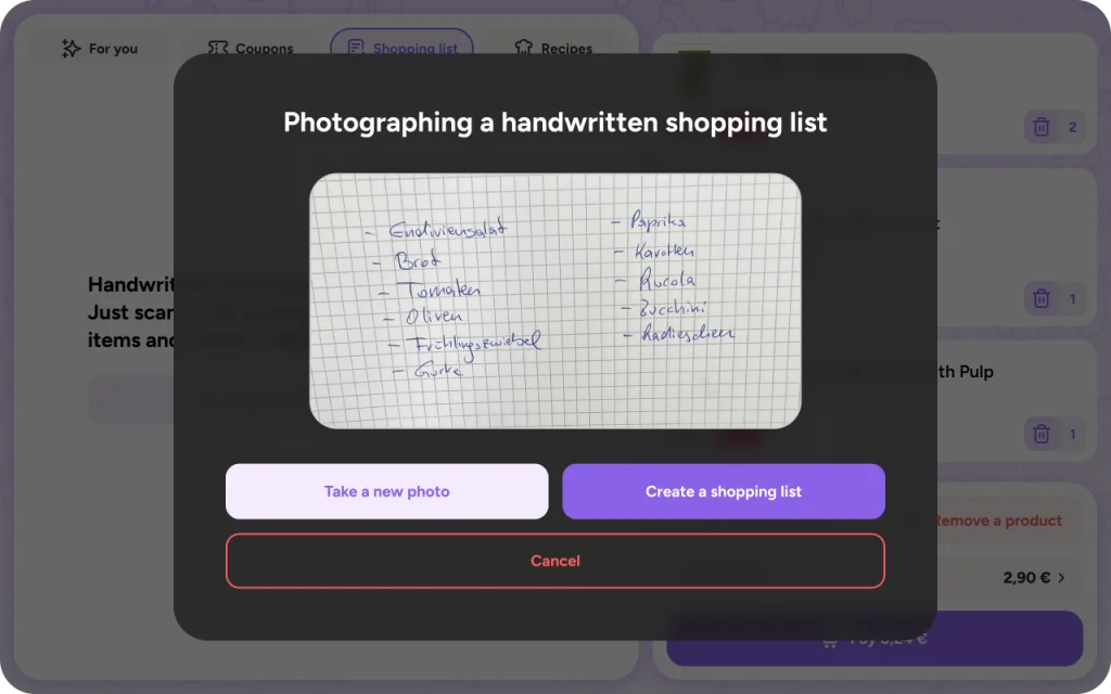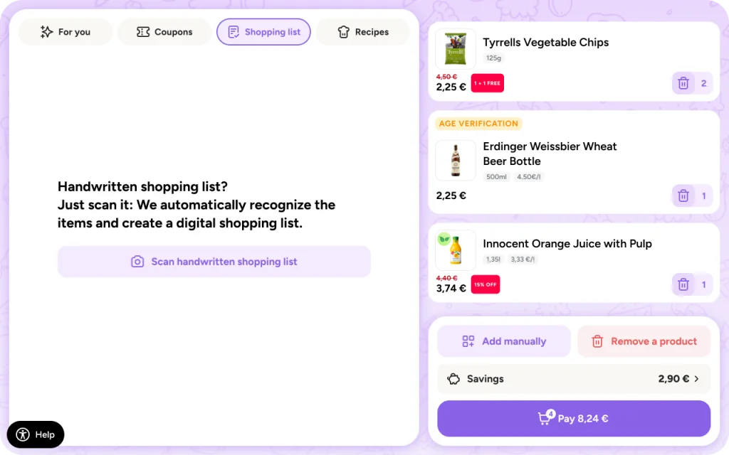 An optional but powerful feature available on tablets with a working camera is shopping list scanning. This allows customers to take a photo of a handwritten or printed list at the start of their visit. The app then uses OCR (optical character recognition) and AI to convert the image into a digital shopping list.