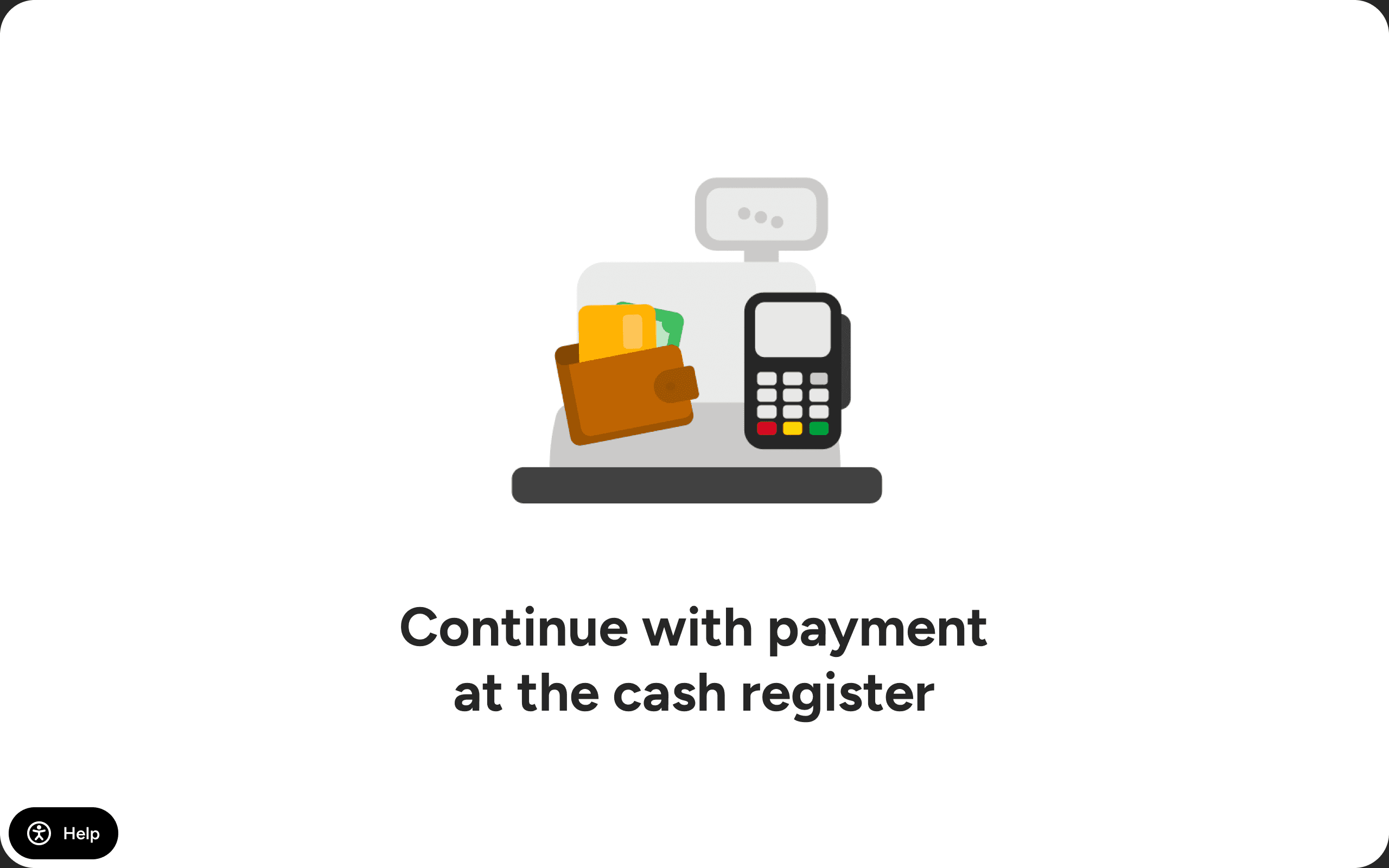 Since the payment at the cash register is a process handled by a third-party system, the shopreme app on the snap cart shows a locked screen while the payment is processed by the cash register. This prevents any unwanted behavior or modifications that are not in sync with the cash register. This screen is only exited after confirming a payment or canceling it: