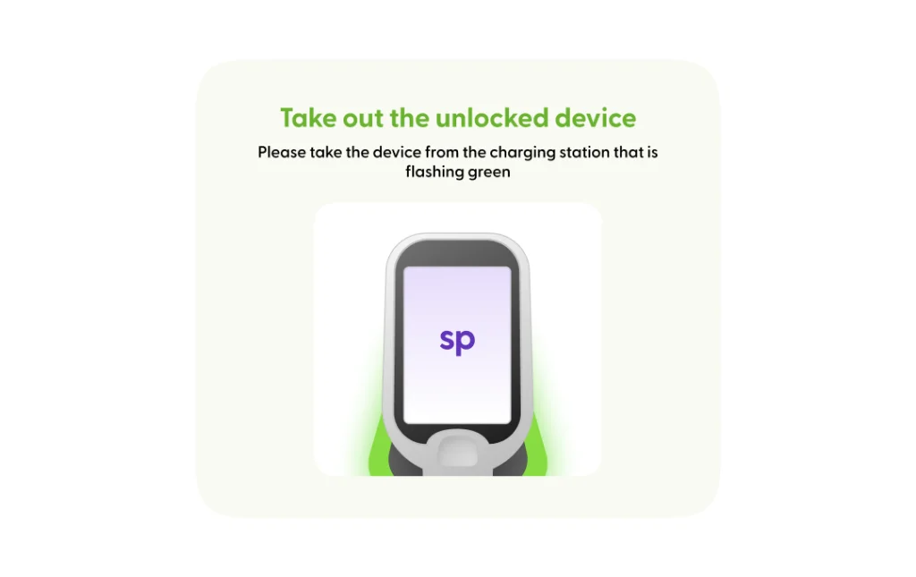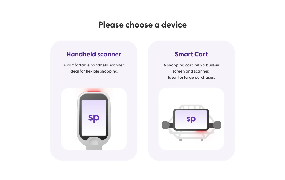 The unlocking process starts at the unlocking station when a shopper selects whether they want to use a handheld scanner or snap cart (depending on availability).