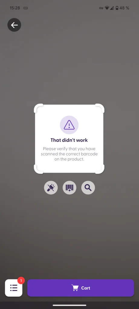 Setting a scanning error can be helpful in a situation like this: A product should be weighed on a scale before its barcode can be scanned. However, the product’s PLU is printed in some shelf-label barcodes to help employees when stocking up the shelves. Customers may scan this barcode thinking it should add the product to their cart. Retailers can set up an error message for that specific barcode that explains to customers that they should scan the correct barcode.