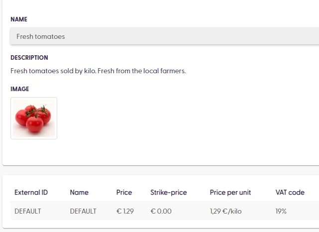 Here is a simple example of a product imported with a PLU, which will need to be sold by using fractional quantities: