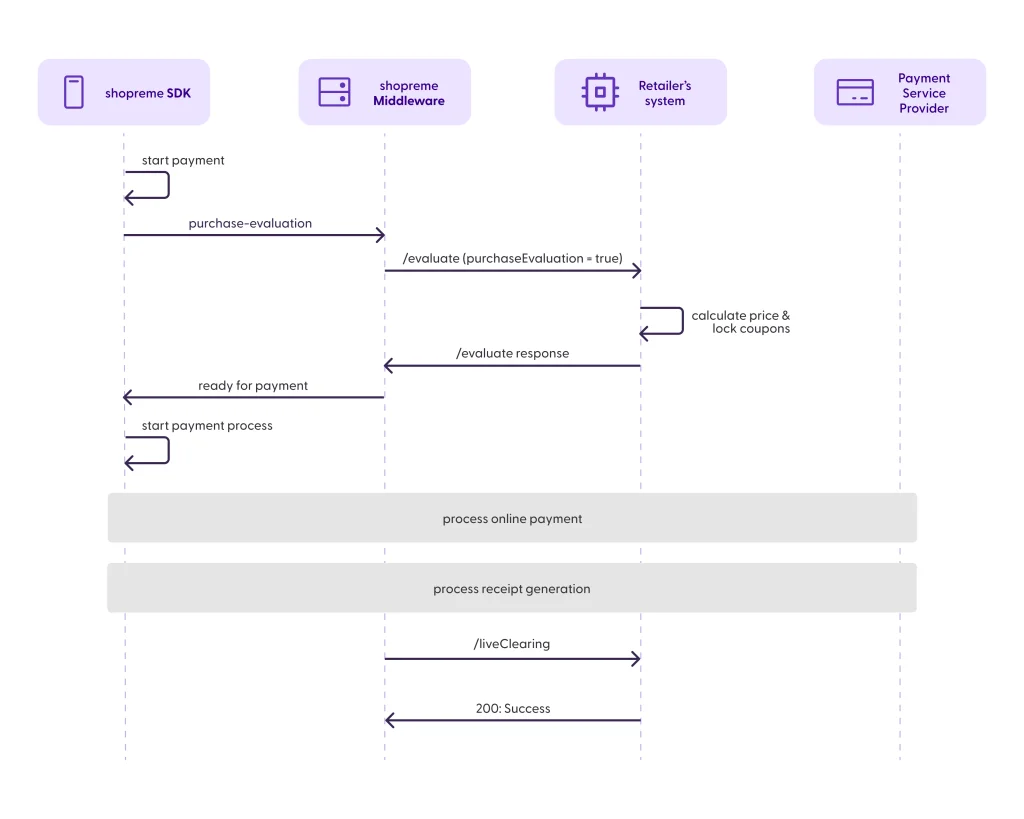 The field transactionId included in this request must reference the one from the final /evaluate call made before initiating payment.