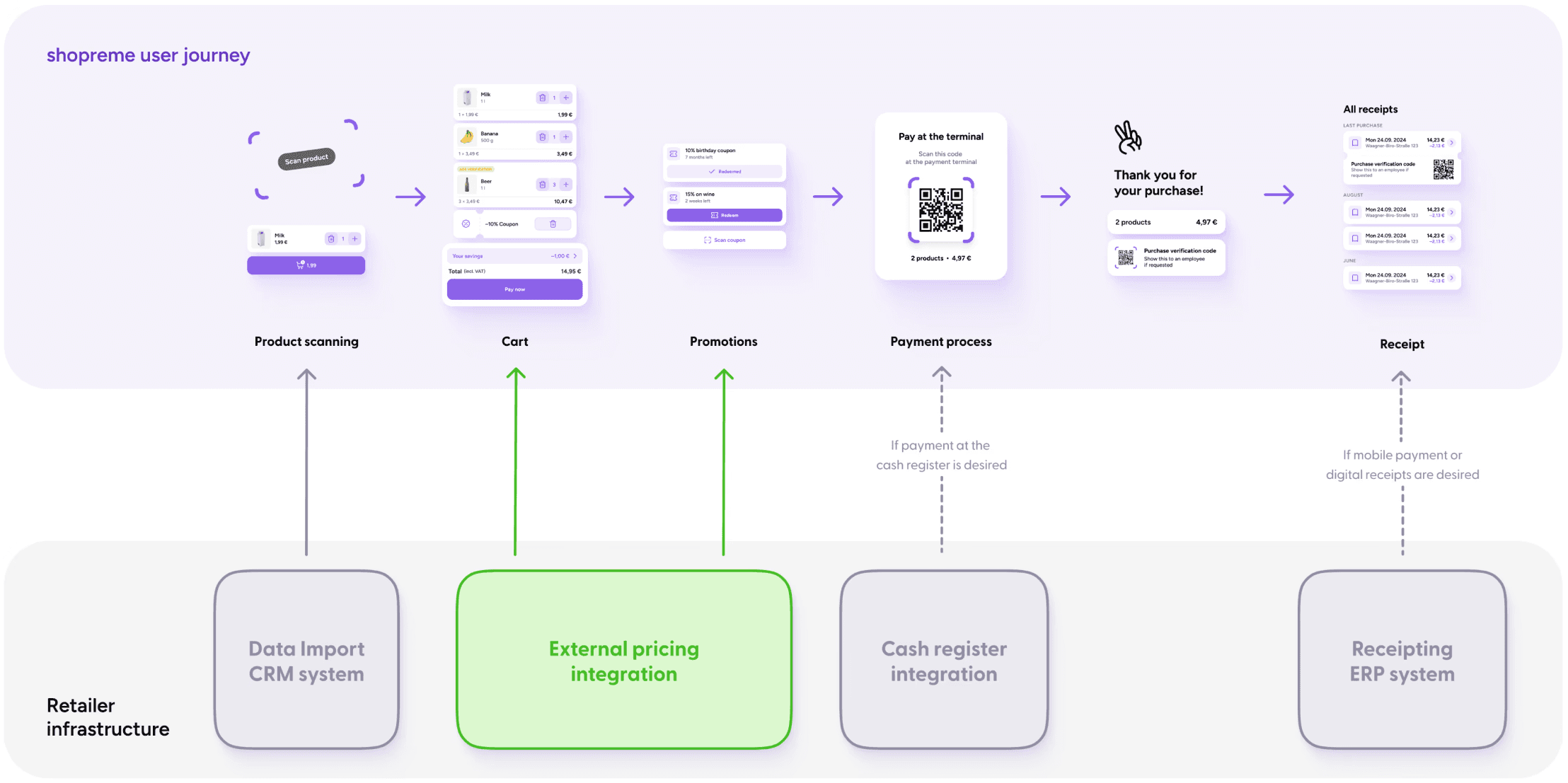 In a Scan & Go experience, pricing isn't just about displaying numbers — it's about ensuring transparency, trust, and smooth payment. Pricing integration allows retailers to evaluate prices, apply promotions or loyalty benefits, and finalize totals during checkout. This article explains when pricing integration is needed, how it works, and what teams are usually responsible for setting it up.