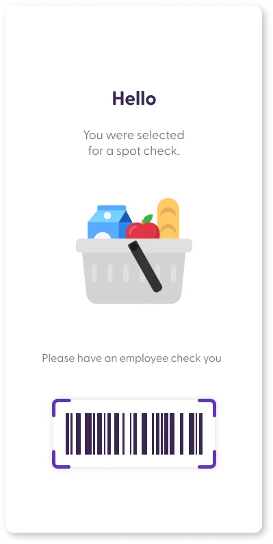 Our spot check works as a software-based mechanism to prevent loss and minimize risk in the stores. Shoppers are asked to be verified by an employee before they can pay and leave the store. This is done by presenting a screen on the client Scan & Go app and the shopreme matrix. The shopper verification is completed by employees only through the shopreme Supervisor app.