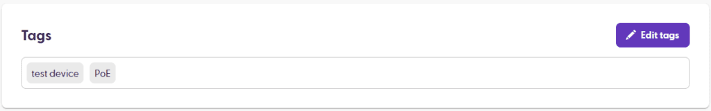 Beneath the vector information section, you can see what tags a device has. Each vector can have up to 4 custom tags to help you keep track of any specific details. Each tag has a limit of 55 characters.