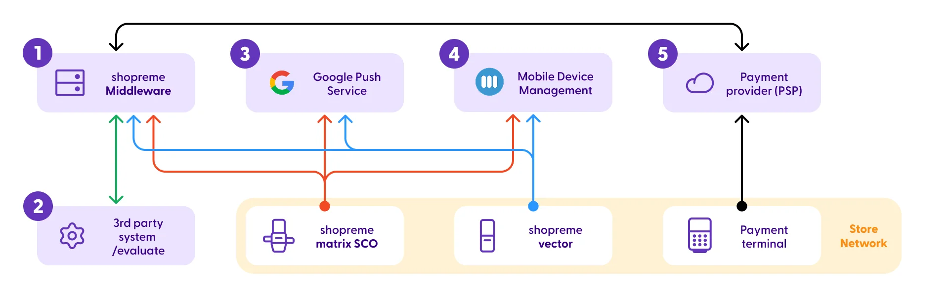 Mobile Device Management: shopreme currently uses Miradore MDM to remotely manage Android devices, such as the matrix SCO and vector exit. An MDM allows shopreme to push app updates and other over-the-air customizations.